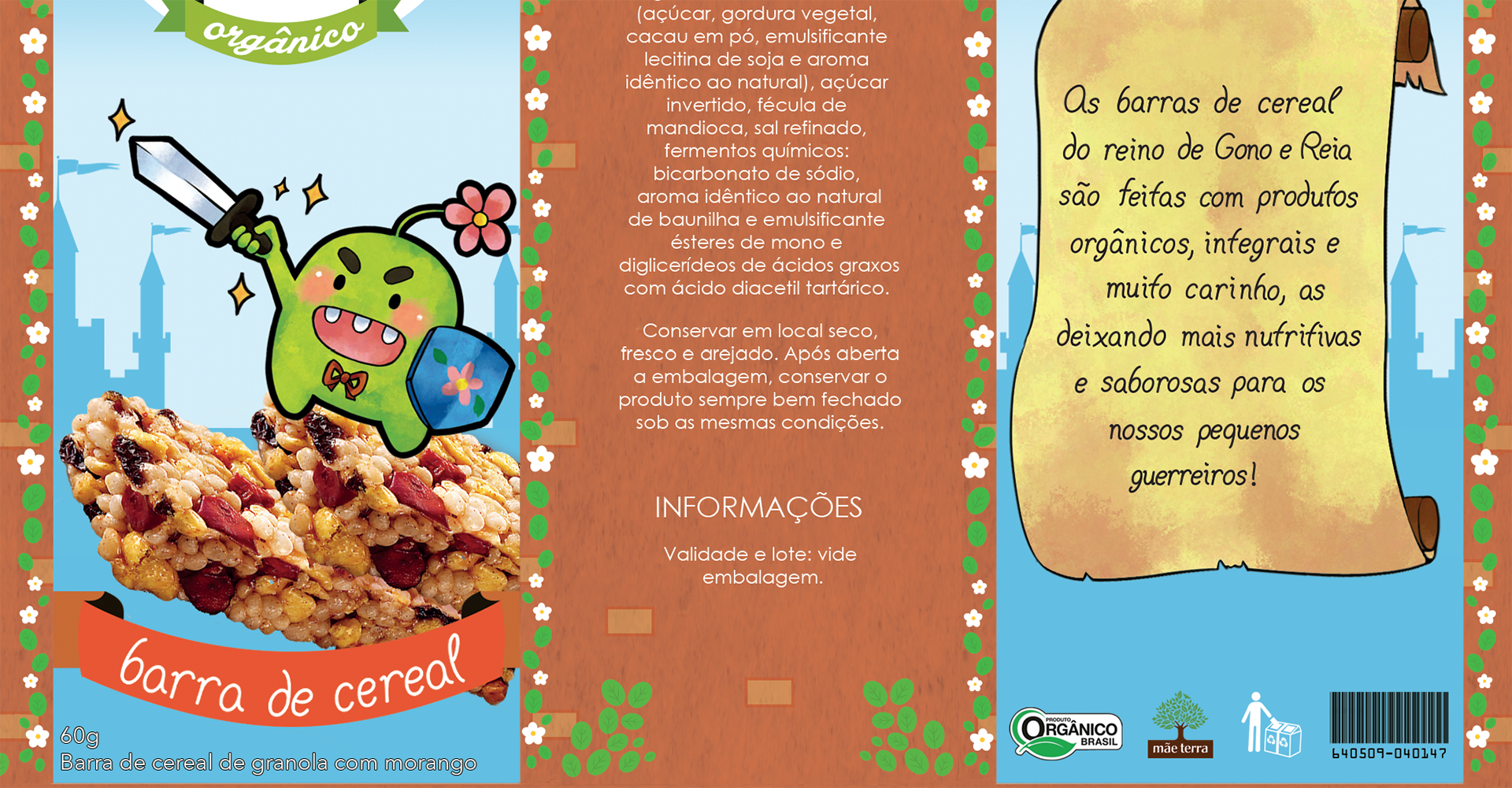 Projeto gráfico desenvolvido para a matéria de Embalagem, integrado com Tipografia, voltado para o setor alimentÃcio de lanches infantis saudáveis/orgânicos.