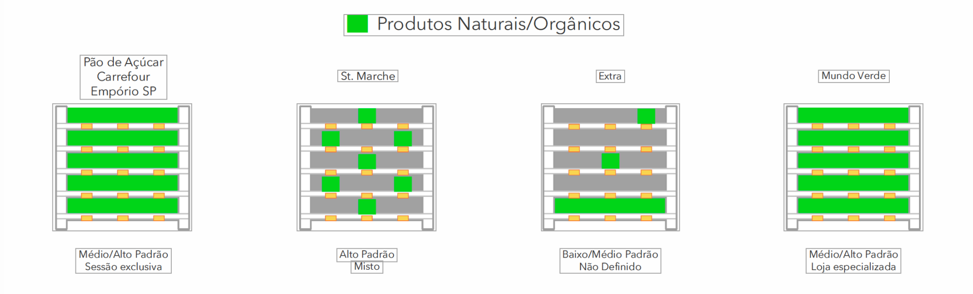 Análise da disposição/organização de orgânicos em mercados, supermercados e hipermercados: