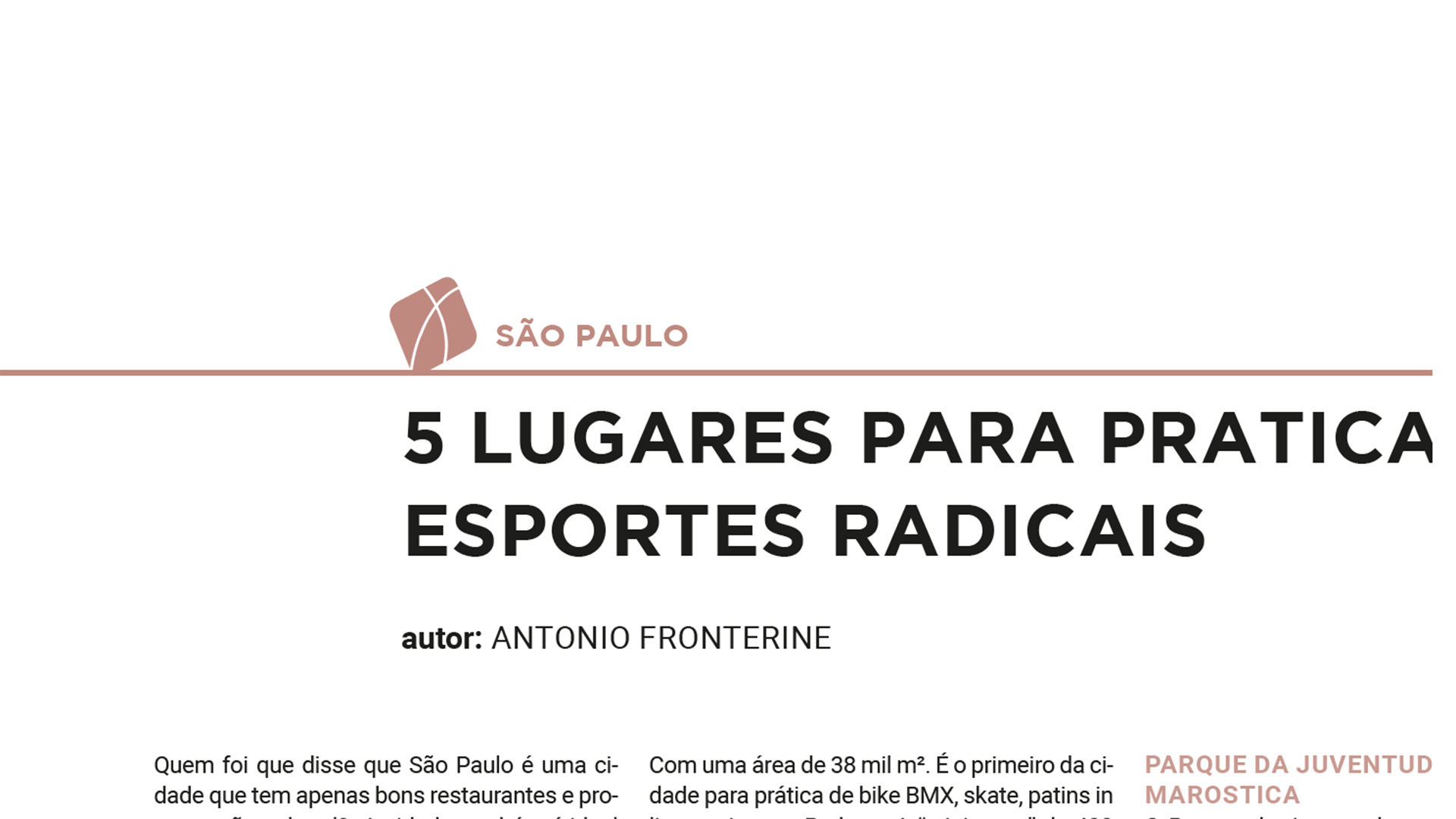 - foto: sempre terá uma pessoa praticando um esporte, mostrando e instigando a pessoa a abrir a matéria principal. A imagem sempre será aumentada, dando foco ao elemento principal que é o equipamento, além do fato de identificação do público alvo com o conteúdo e espirito adrenalístico.