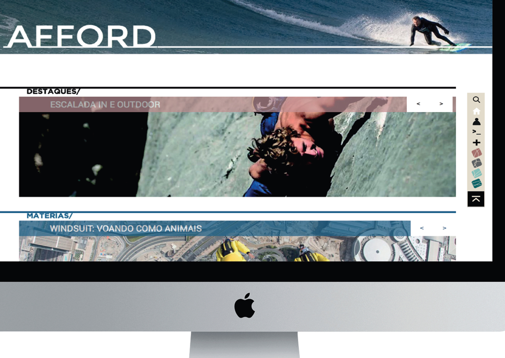 Dando continuidade ao desenvolvimento da marca, em Projeto IV nos foi proposto estender o universo criado para a revista: para o Mundo Digital. O site da revista AFFORD foi desenvolvido para ser o conteúdo e a identidade da marca original adaptada para uma versão digital.