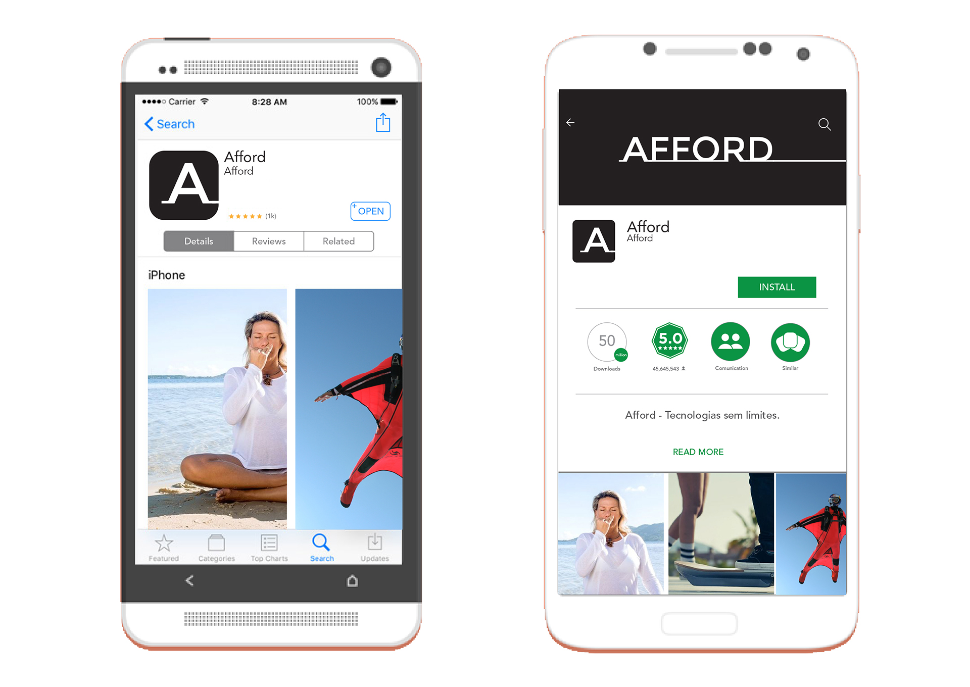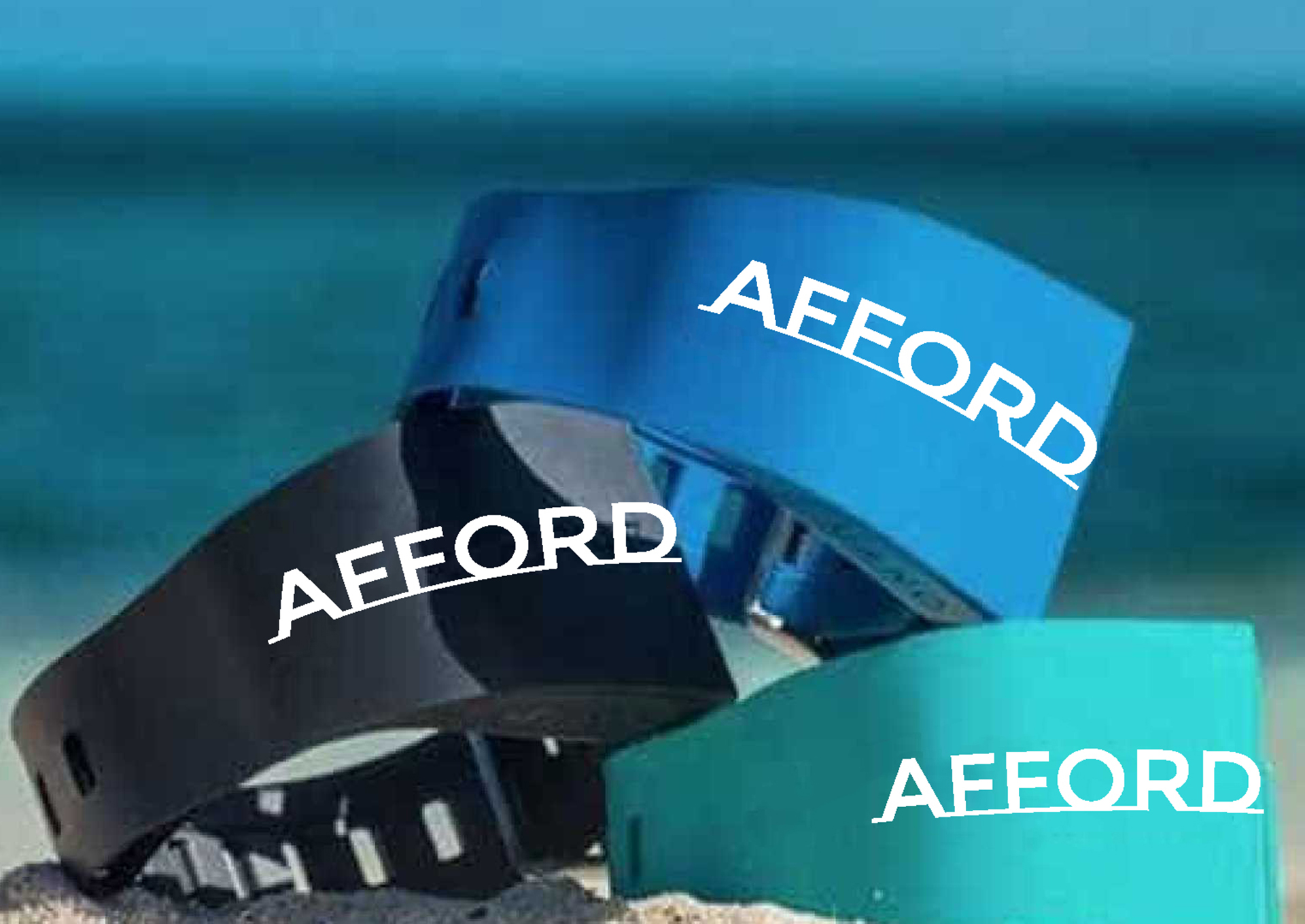 Um dos wearables da “Afford” é a pulseira desenvolvida especialmente para melhorar a segurança de quem é um amante do surf. Com um pequeno dispositivo embutido em seu interior, faz uso da tecnologia shark protection que emite incômodos pulsos eletromagnéticos, então captados pelos predadores. Assim, é garantido segurança tanto para a pessoa quanto para o animal que não precisa ser predado nem por motivos de segurança.