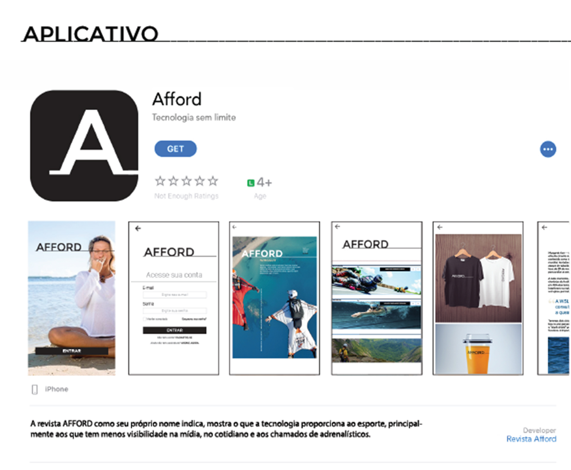 No módulo II da matéria de Projeto desenvolvemos, a partir do sorteio de um tema, uma revista onde definimos público-alvo, nicho de atuação e nome, com consequente criação da sua Marca e Identidade Visual. Assim, criamos a Revista AFFORD que aborda o tema da Tecnologia direcionada para praticas esportivas.