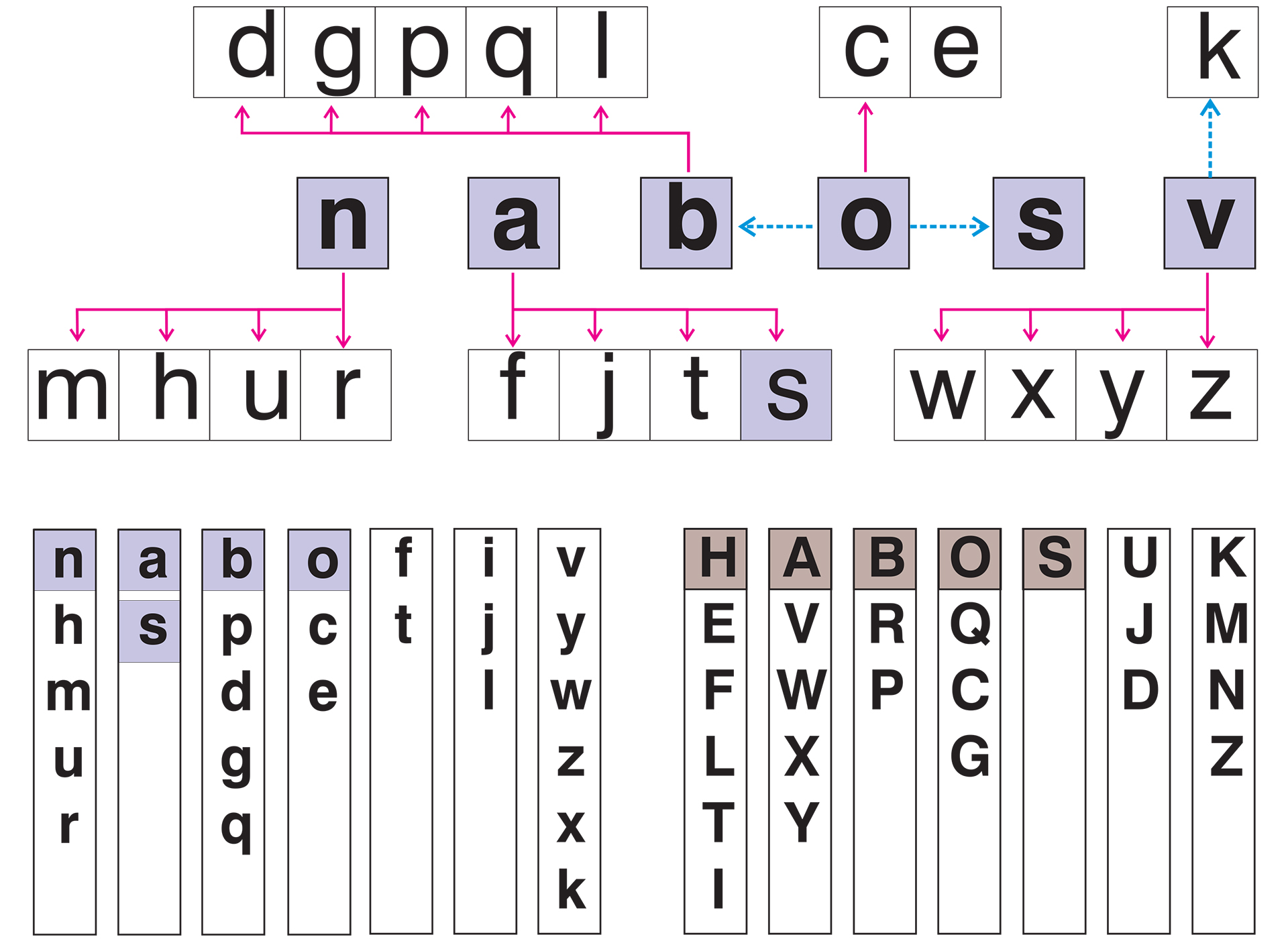 Para começar, analisei e identifiquei quais as principais e mais marcantes características construtivas da minha inspiração: hastes paralelas, com espessura constante e terminações na diagonal. Além disso, não há olhos/brancos internos formados por "círculos"; são representados por intervalos verticais.